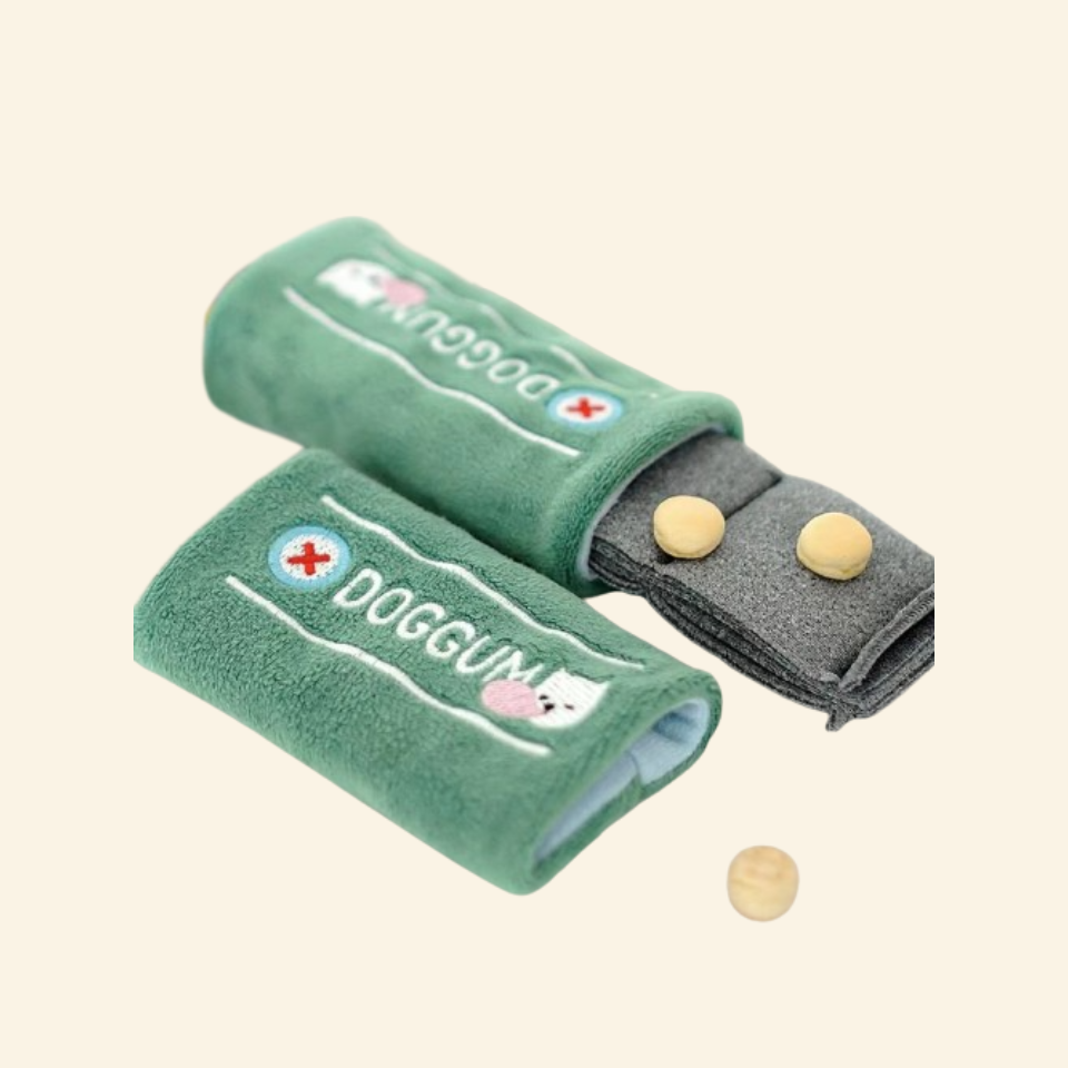 Check out this cute chewing gum interactive nosework toy! It contains multiple food pockets for you to hide your pup's favorite treats! This toy is great for dogs that are nosework beginners.