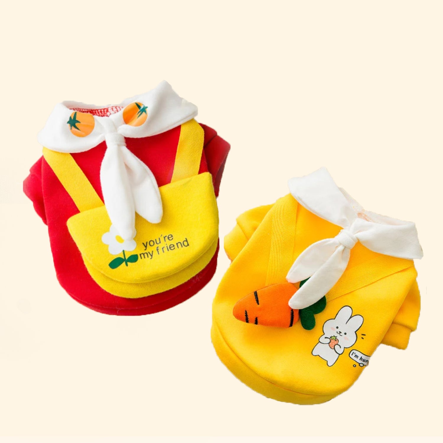 Only pawsitive vibes is allowed! Celebrate this spring with our cute Little Bunny and Sunflower Shirt. The shirt is designed with a little ribbon knot sleeve which makes the total look more chic and attractive. The Little Bunny Shirt features a bunny pattern and a 3D carrot embellishment (how cute!) and the Sunflower Shirt features a little crossbody bag which makes it perfect for outdoor adventures! Available in 5 sizes: XS, S, M, L and XL.