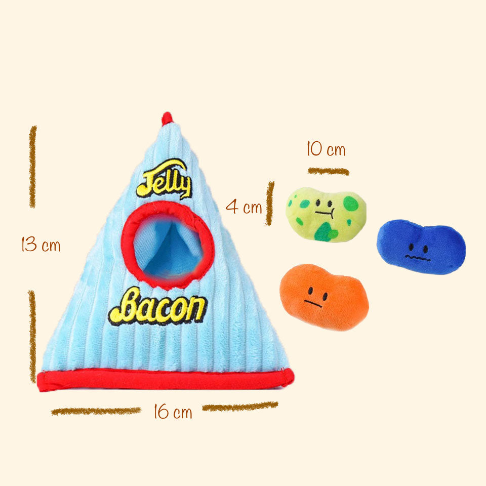 It’s the perfect interactive toy for keeping your pups busy and engaged through hide-and-seek play that prevents boredom and promotes mental stimulation! This toy comes with 1 jelly candy house and 3 jelly bean candies.