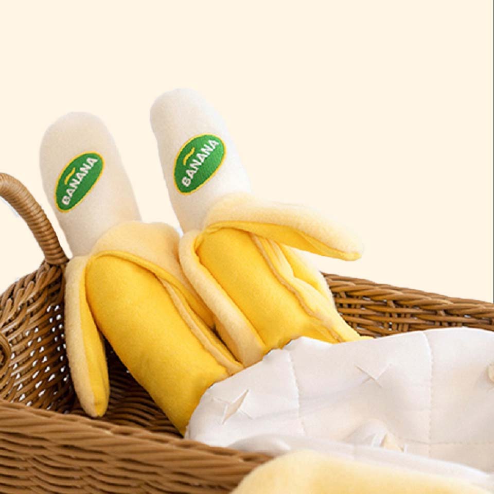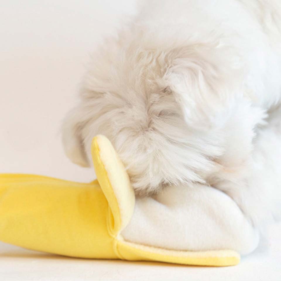 Hey frens, get your daily dose of fun and engaging potassium with our Banana Nosework Toy! Hide treats inside the food pockets of the banana or within the banana peel for a sniffing fun time! The banana can also squeak and crinkle that can keep your pups entertained for hours!