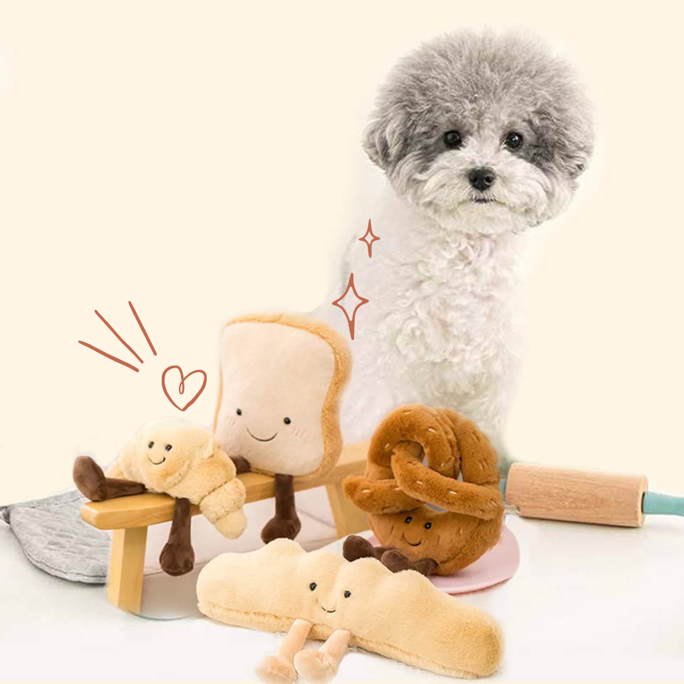 PETTO PETTO bakery is now open! We've got some freshly baked toast breads, pretzels, croissants, and baguettes for your pups! These Little Bakers Plush Toys are great to fetch and play, or to snuggle and sleep with. They also make crinkling and squeaking sounds that your pups would love!
