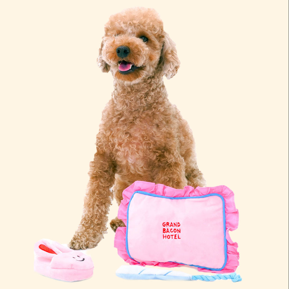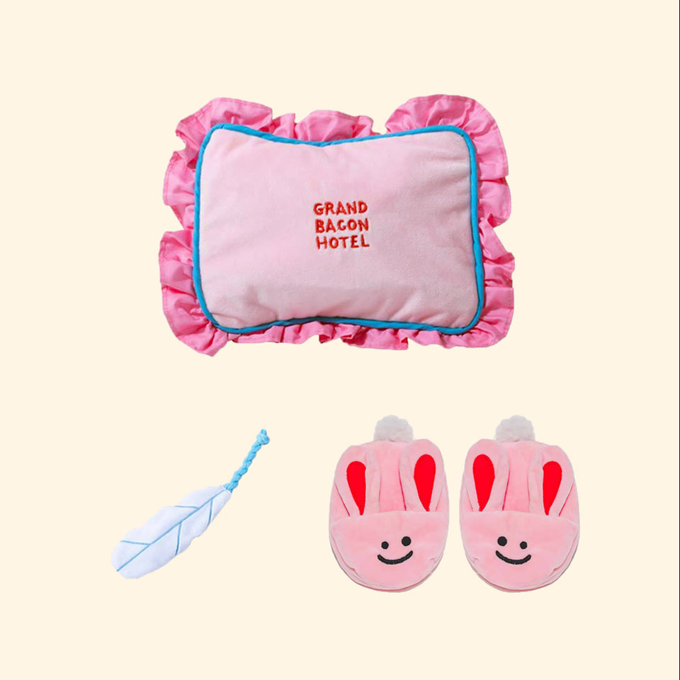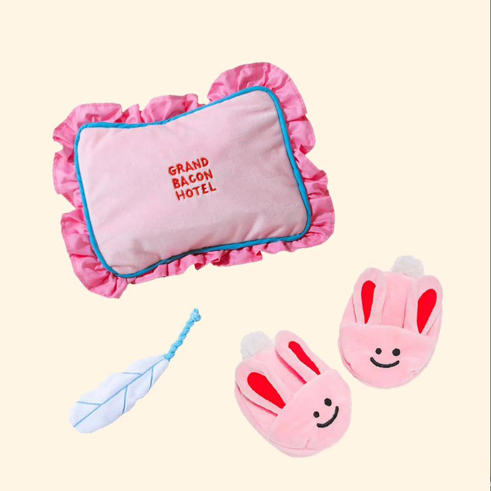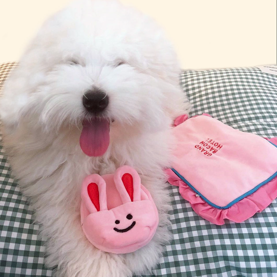 Hey frens, let's pack your stuff as we're going on vacation! Our Little Bunny Hotel Kits comes with everything you need- little bunny slipper, pillow case and a soft feather toy! You can hide extra treats inside the little bunny slippers or under the pillow case for a challenging game time! This sniffing exercise can help relieves your pups's stress and boredom and sharpen their senses!
