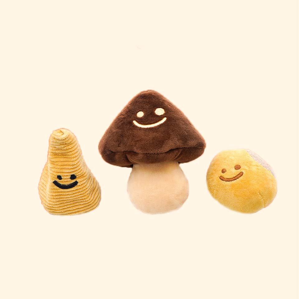 Our Little Mushroom Set Toy is great for fetch and play, or to snuggle and sleep with! The mushrooms can also squeak which can keep your pups entertained for hours!