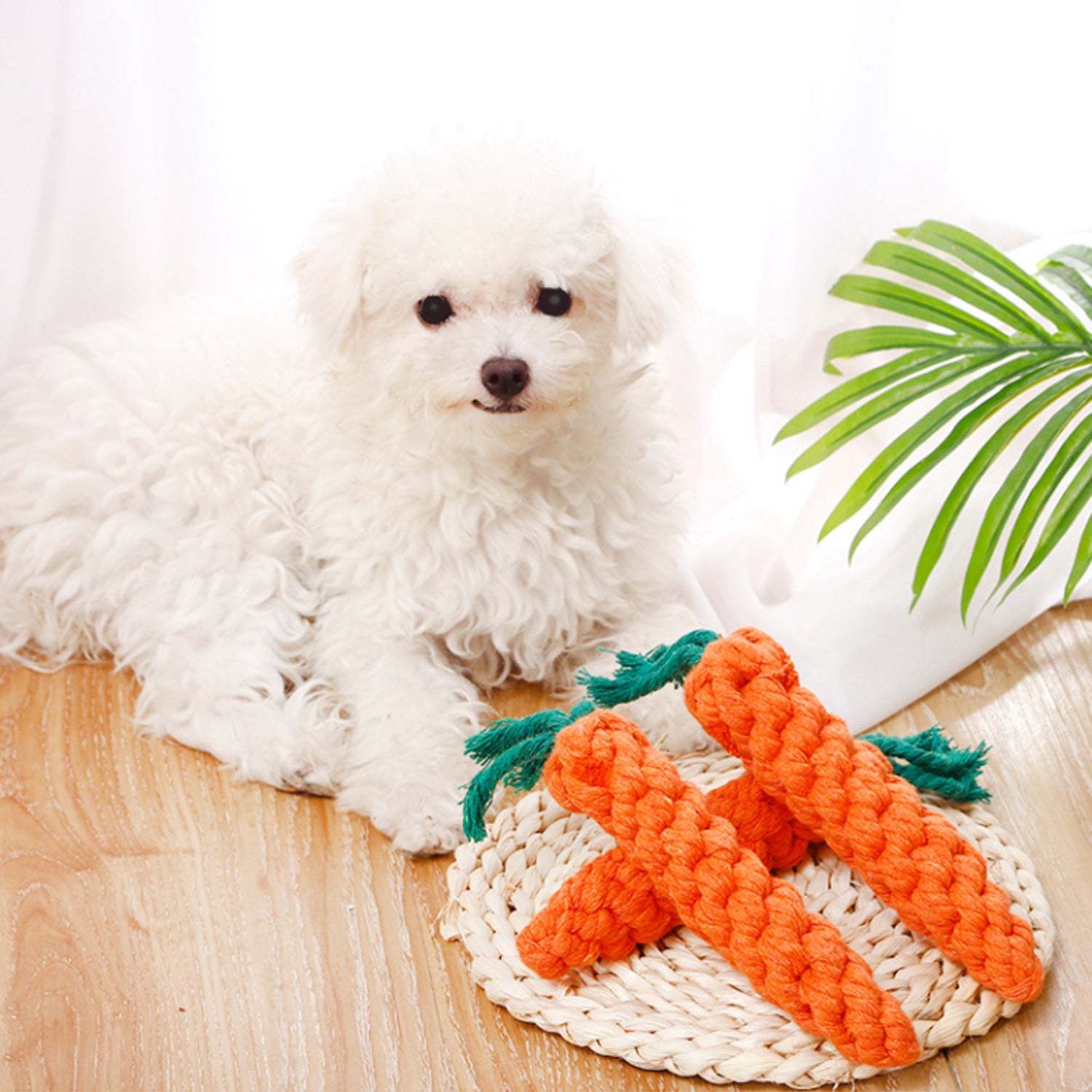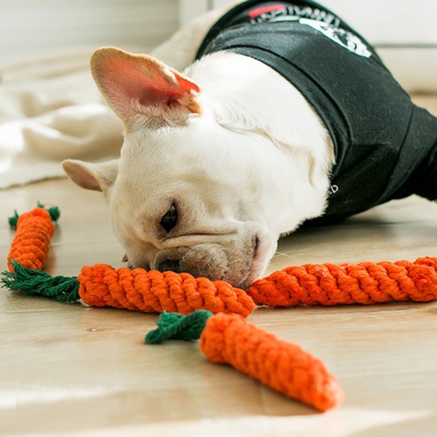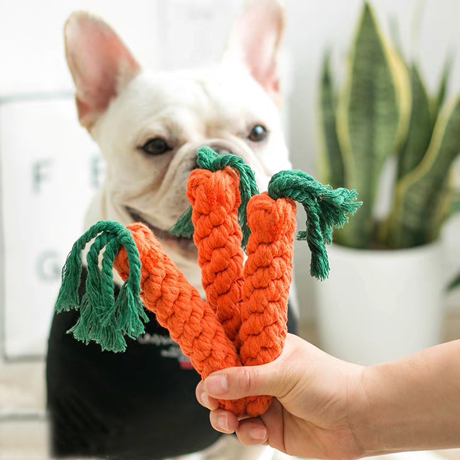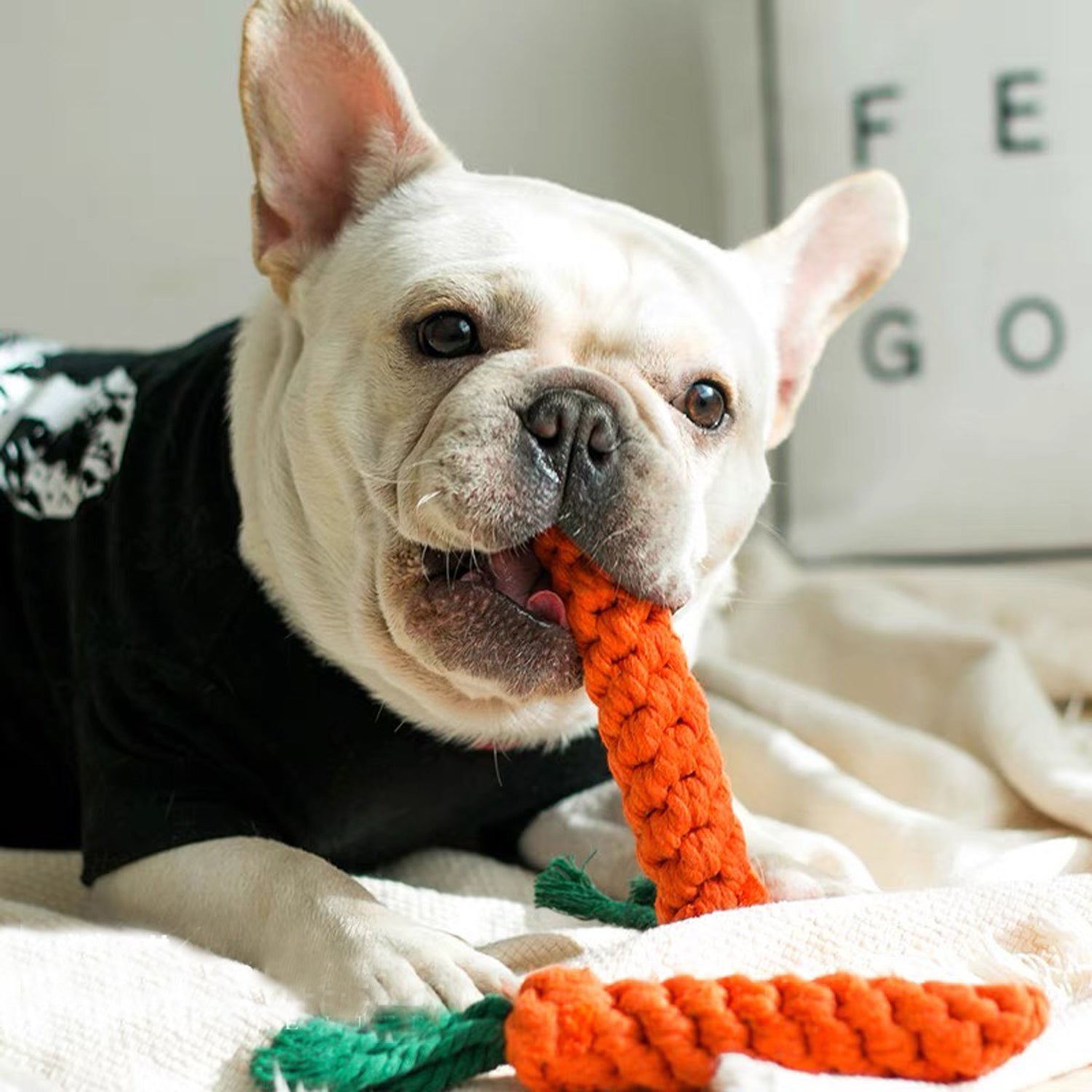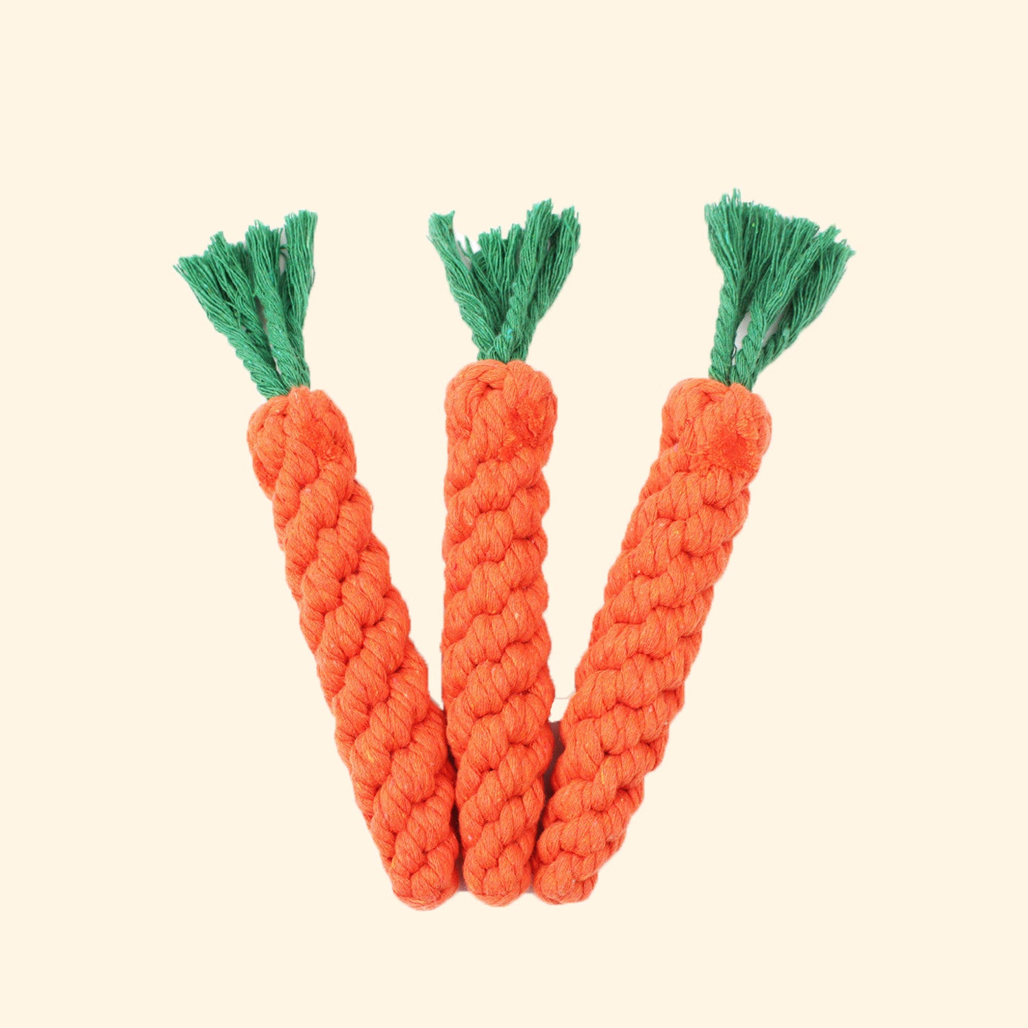 Our sweet hand-knitted carrot rope toy is gonna be your pup's next favorite!