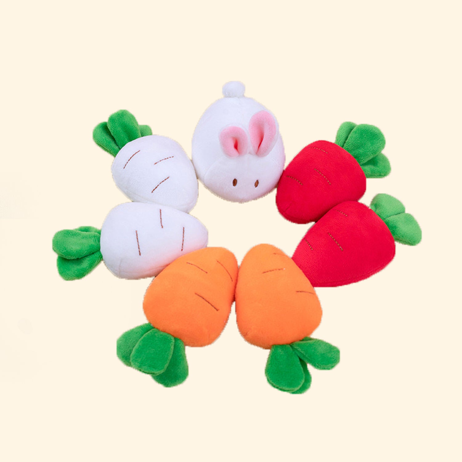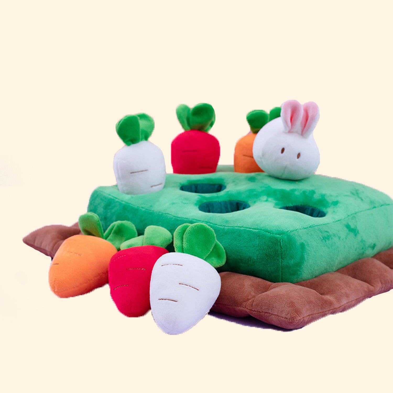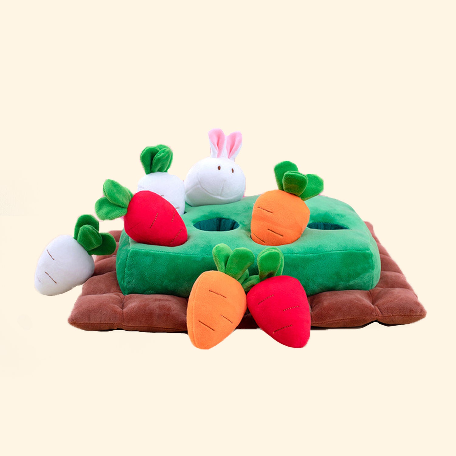 The sun is out, let's go harvesting! Explore our Easter Series Puzzle Plush Toy including Berry Good Carrot Garden, Little Chicks Family, Happy Bunny Garden...and so much more! You can pull out veggies from the field mat and hide your pup's favorite treats in the hiding spots and let them work for their food. It is the perfect hide and seek puzzle toy to always keep your pups engaged and entertained.