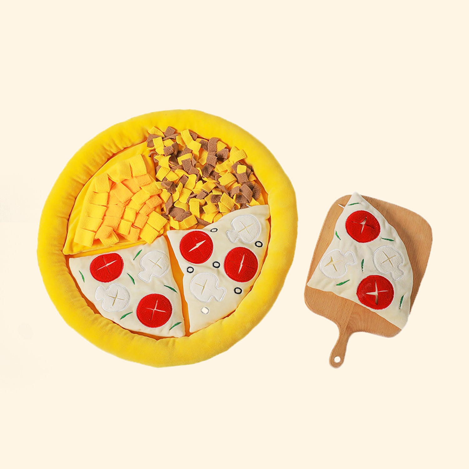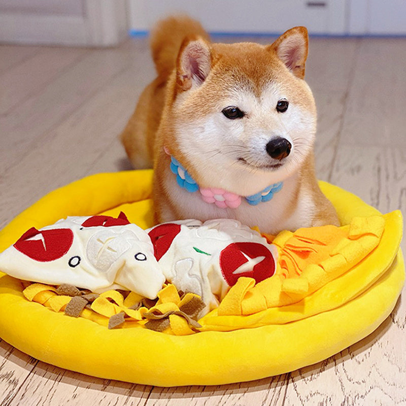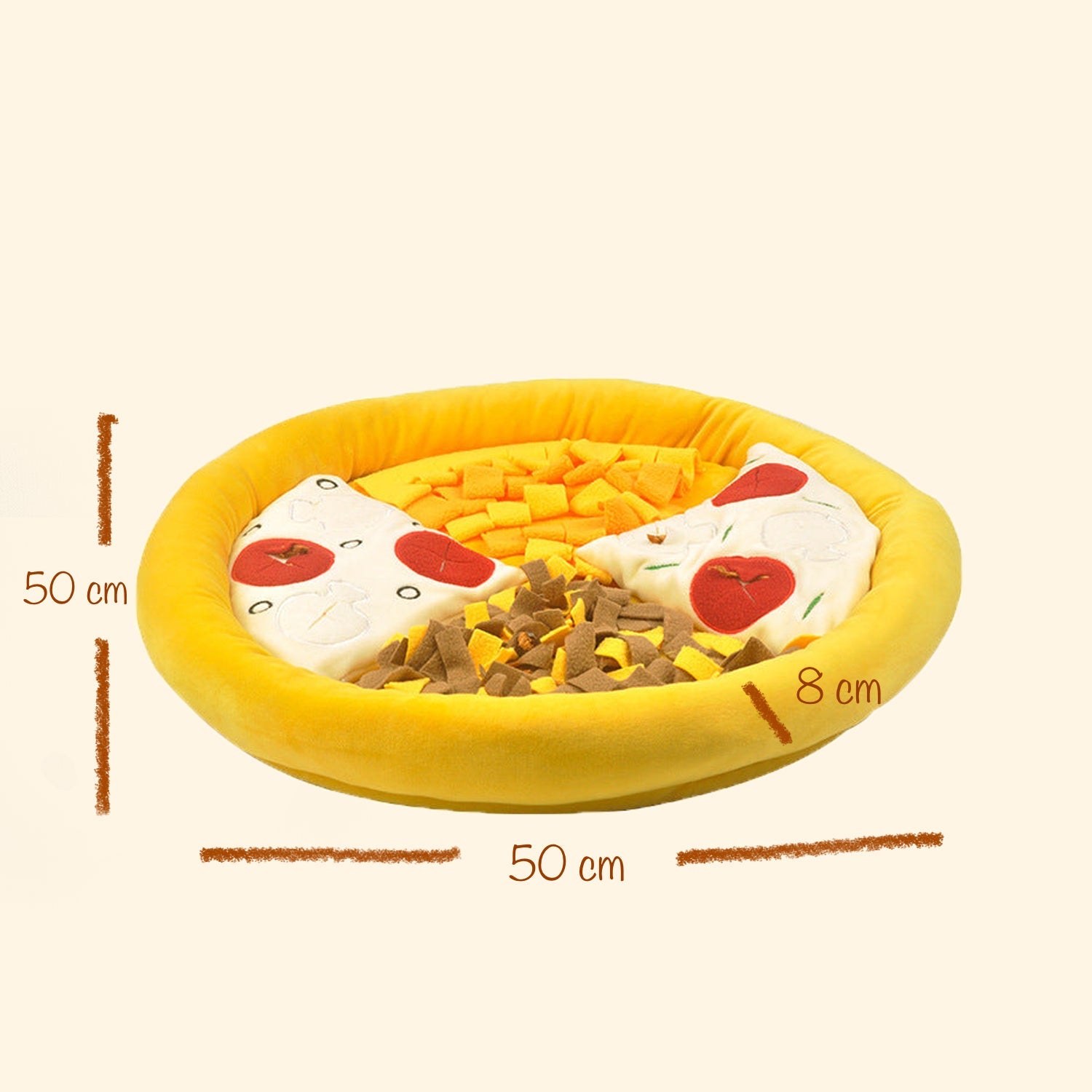 This is probably the best Petperoni Pizza in town! Our Petpperoni Pizza Snuffle Mat is topped with loads of melted cheese, veggies and generous pepperoni slices that is not only delicious but also fun to play! Hide treats inside the hidden pockets of the pizza toppings or in between the cheese and let your pups sniff for it.