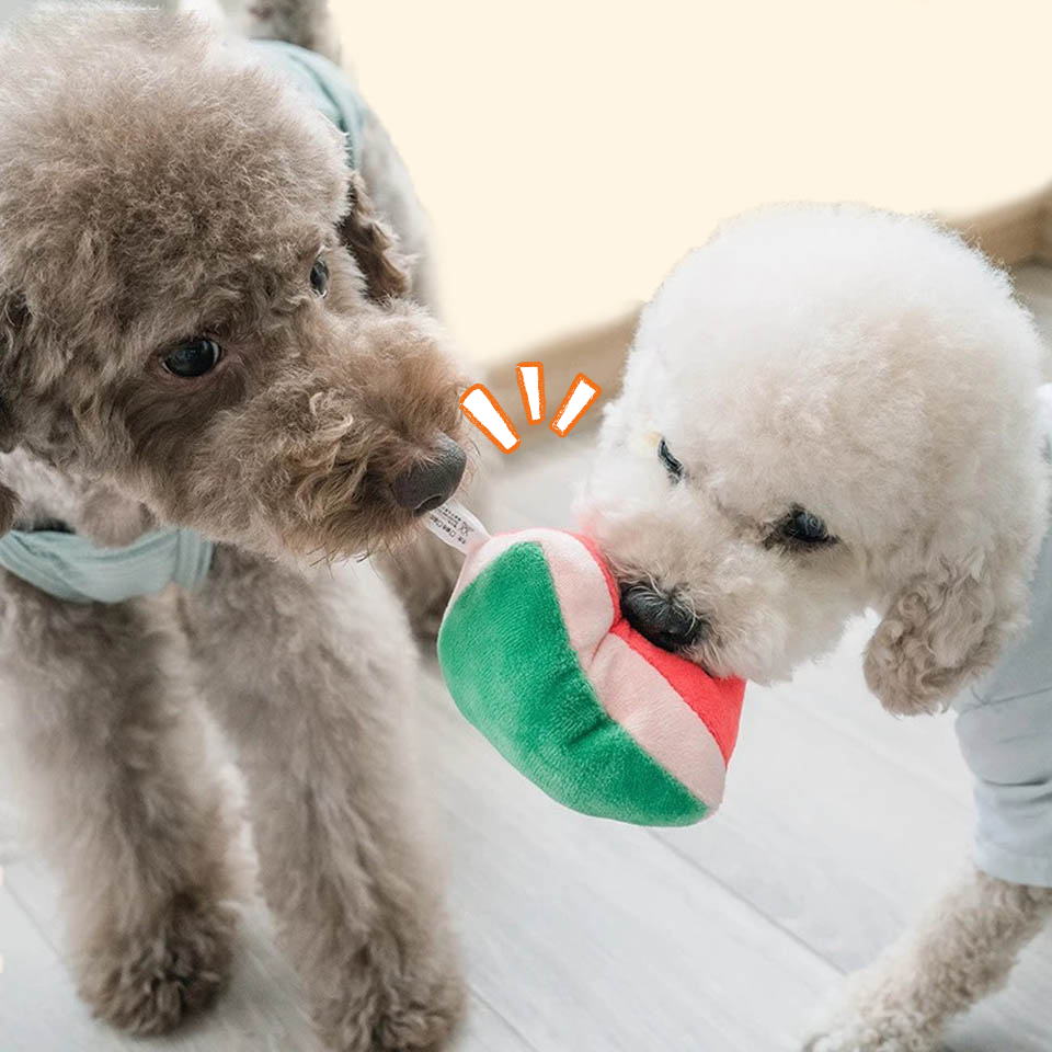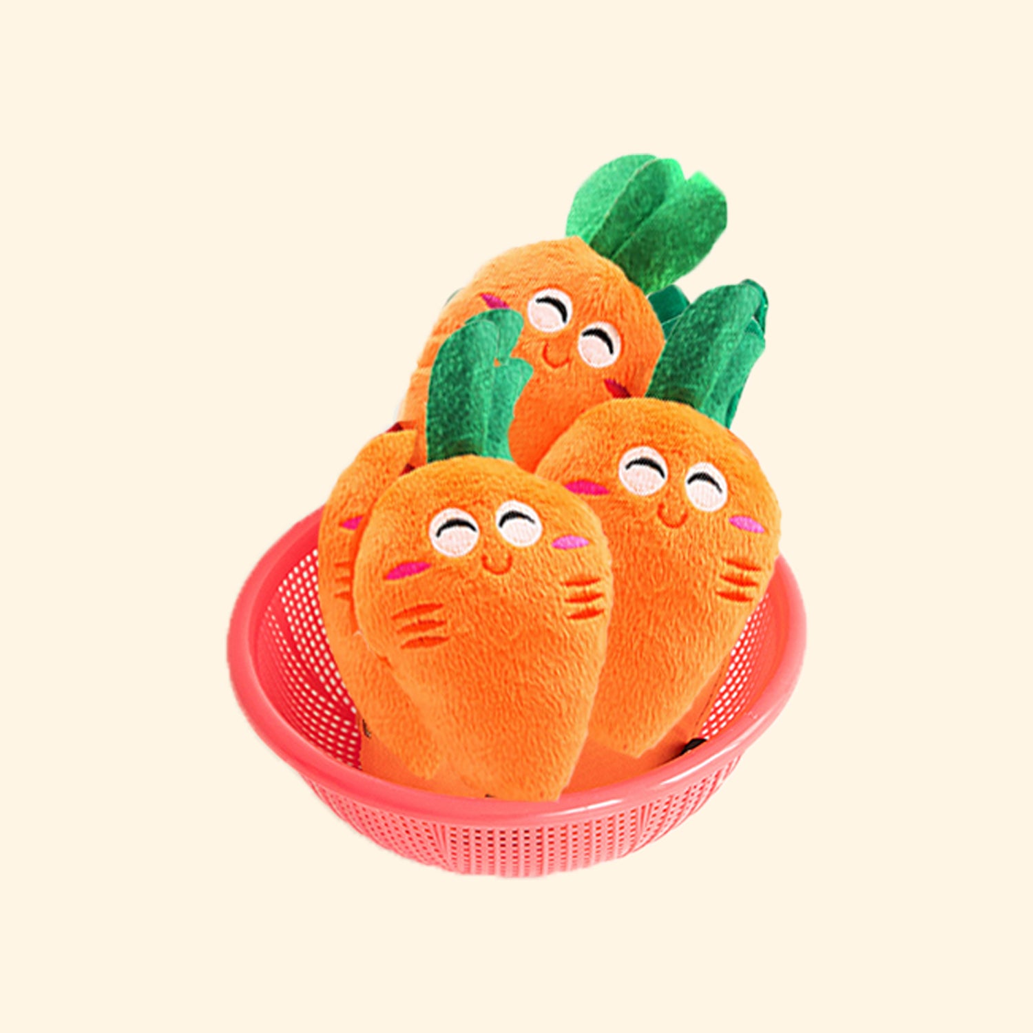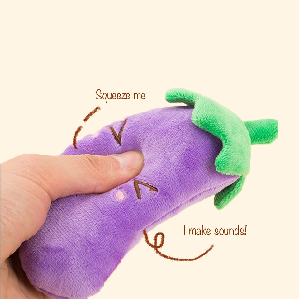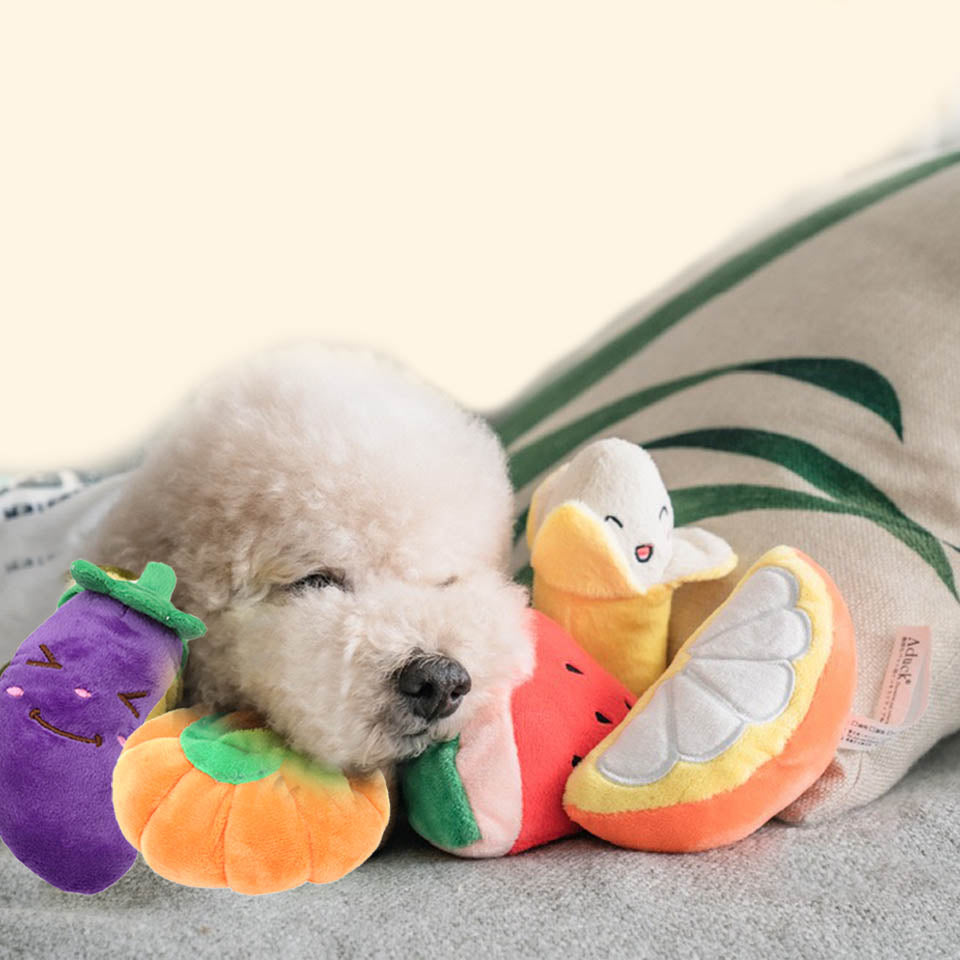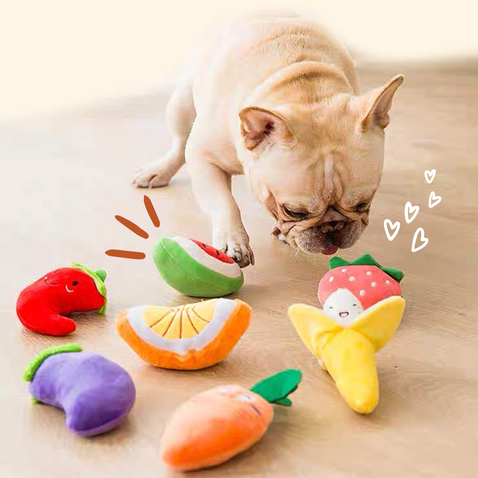 Introduce our new PETTO Garden Fresh Tropical collection which includes 9 tasty options- chili, orange, carrot, mushroom, pumpkin, eggplant, strawberry, banana, and watermelon - all are harvested fresh! These plush toys make crinkling and squeaking sounds that your pups would love. Now your pups can live in a summer state of mind all year long with these fantastic tropical toys!