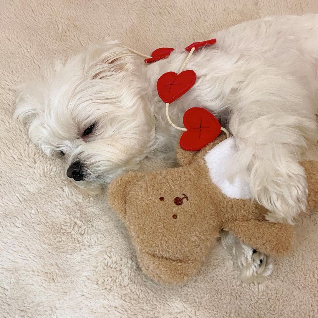 To celebrate this Pawlentine, we're excited to introduce our Loving Teddy Sniff Toy. The soft teddy body is great for doggie play and cuddle time. To double the fun and train your pups to work for its food, try to hide treats inside the hidden pocket of every hearts, once treats are in, simply stuff the hearts back into the belly. The teddy bear head can also squeak, making it ideal for cuddle time and countless indoor play sessions.