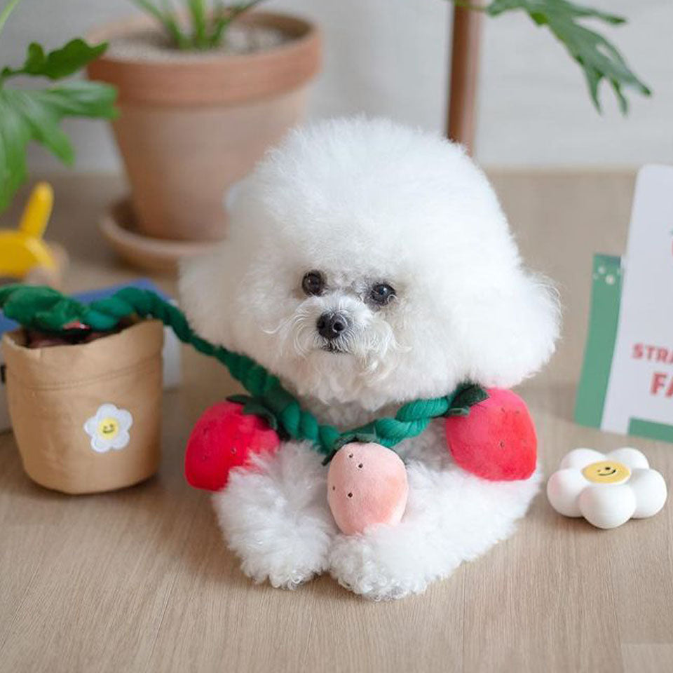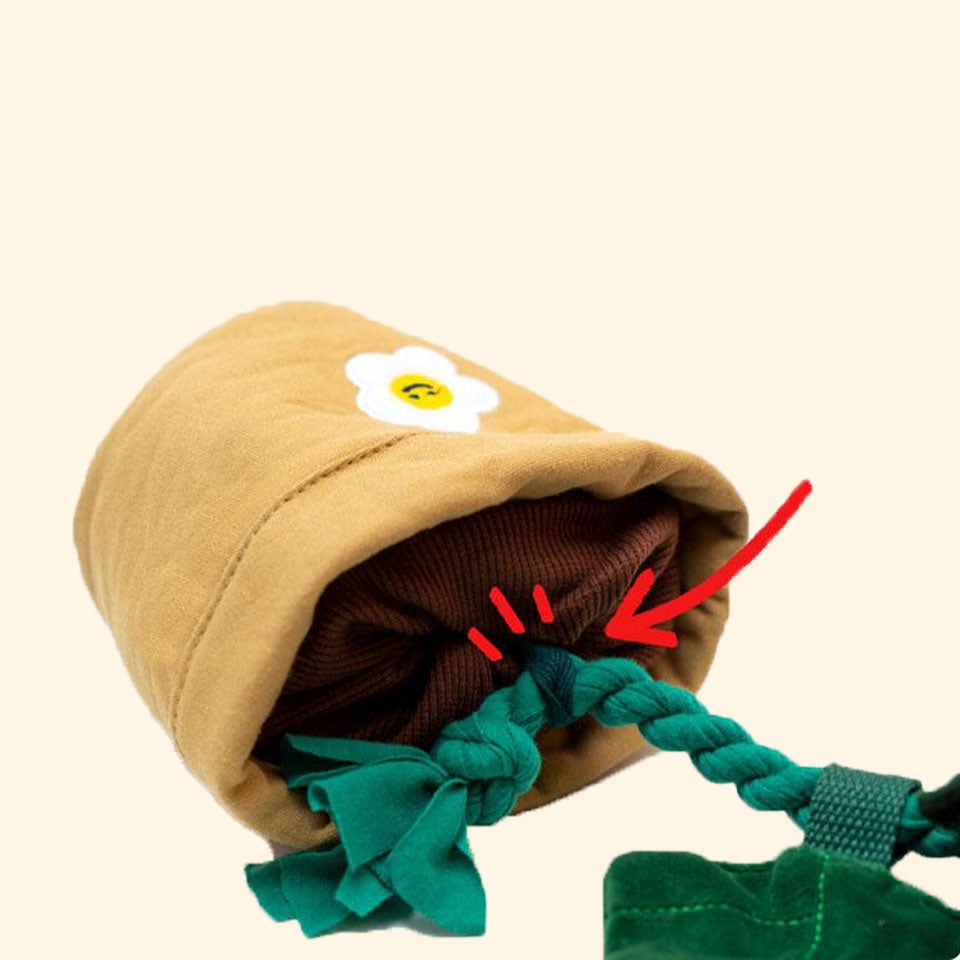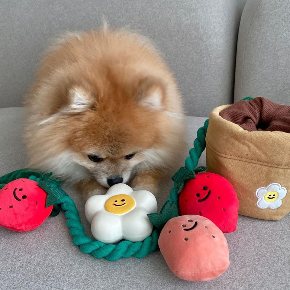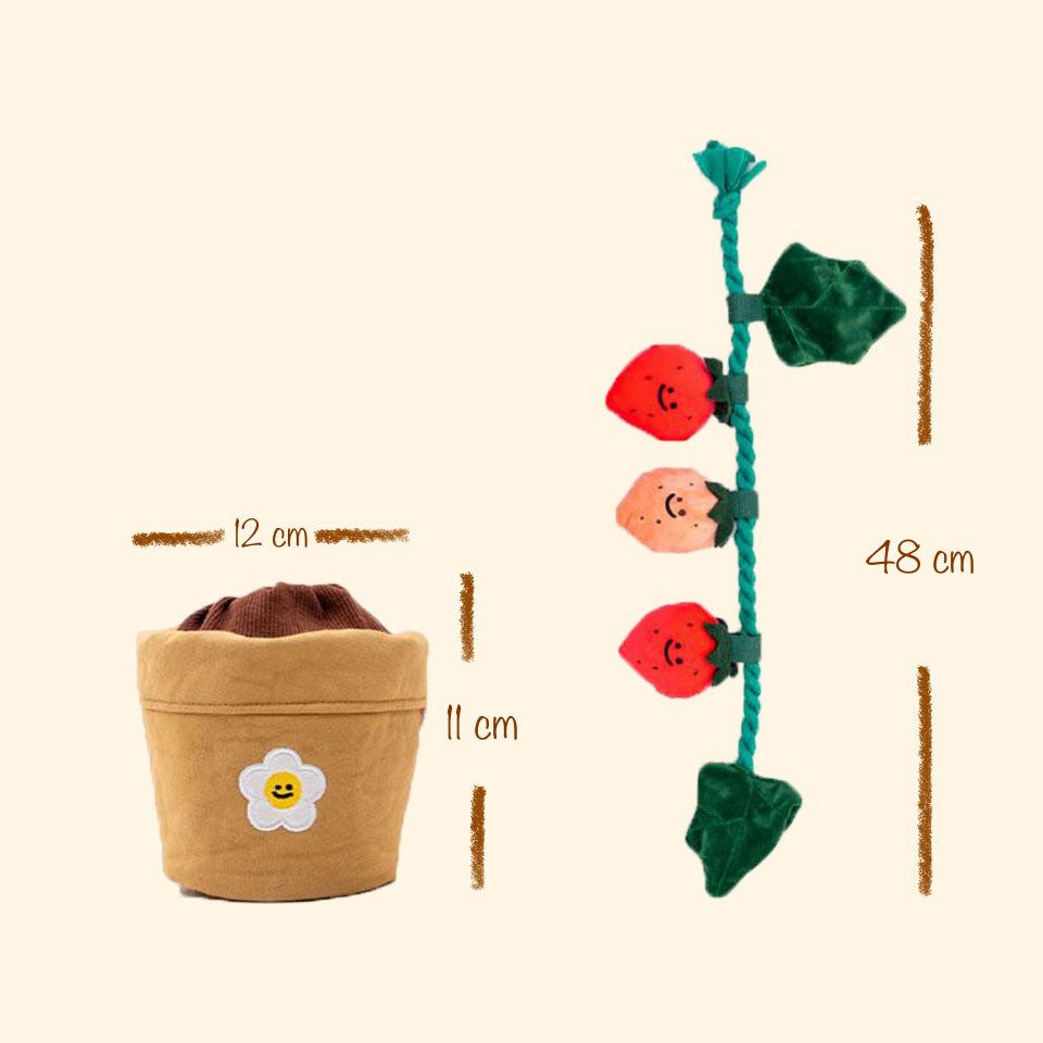 It's strawberry season! Are you ready for some harvesting? Our Strawberry Potted Plant Sniff Toy is an interactive nosework toy and has multiple ways to play with! Pull out the whole vine and have a game of tug or let your dog hunt for all the squeaky strawberries hidden inside the pot. You can also hide treats in the pot and let them sniff out the tasty rewards! Have fun!