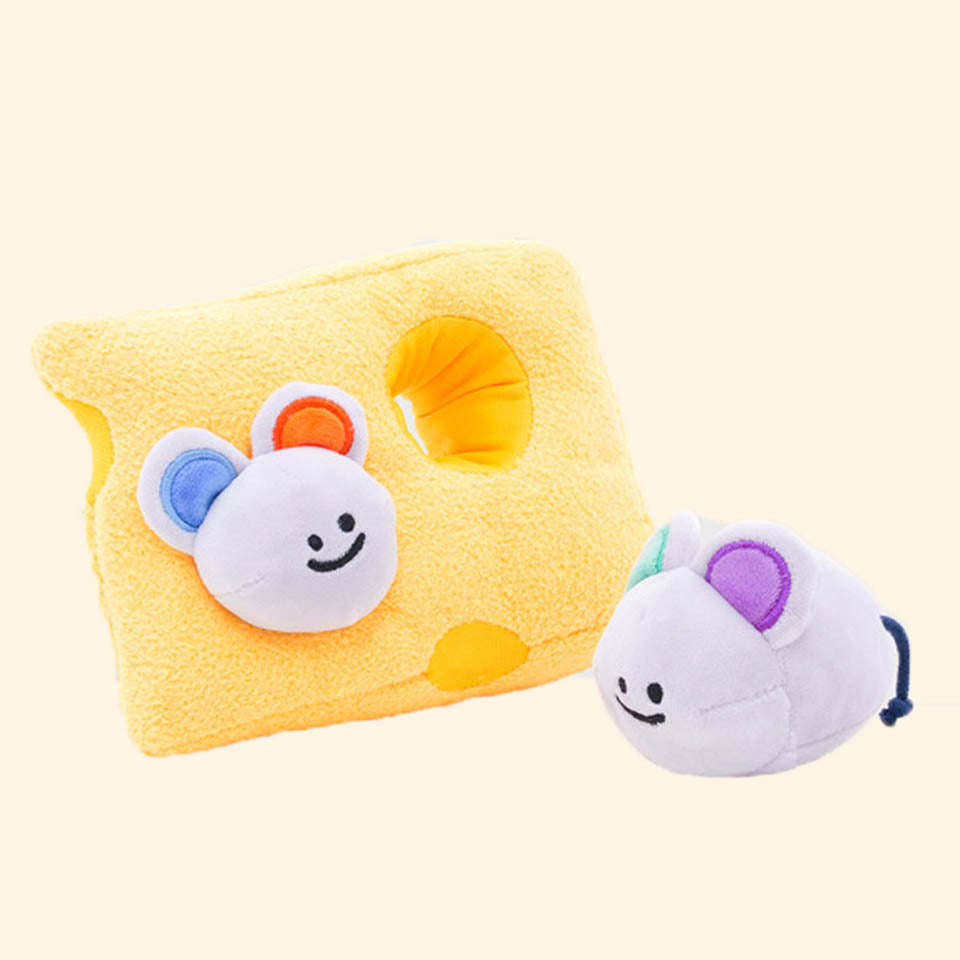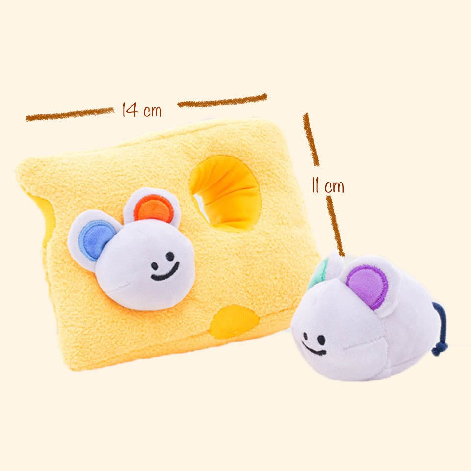 Time to hunt the mouse! Let your pups dive right into our Cheezy Cheese Hunter House and catch the 2 hidden mice to enjoy the delicious cheese! It’s the perfect interactive toy for keeping your pups busy and engaged through hide-and-seek play that prevents boredom and promotes mental stimulation! This toy comes with 1 cheese house and 2 small mice.