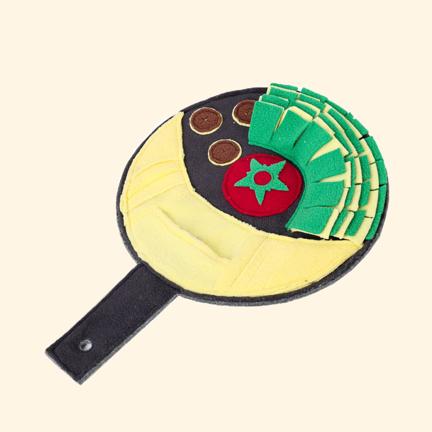 Train your pups for a slow and healthy eating habit with our Oh My Omelette Snuffle Mat! There are so many spots on this omelette pan for you to hide treats- inside the egg, between the lettuce, cheese and tomato!